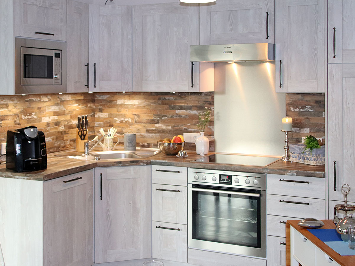 Eine tolle helle Küche mit offenem Essbereich lädt in beiden Wohnungen zum Kochen und Genießen ein. Im Wohnbereich spendet ein Kaminofen wohlige Wärme und eine hochwertige Sitzecke laden zum Verweilen ein.